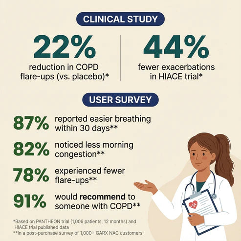 NAC has been studied alongside standard COPD treatments (including inhalers and bronchodilators) with no conflicts reported.